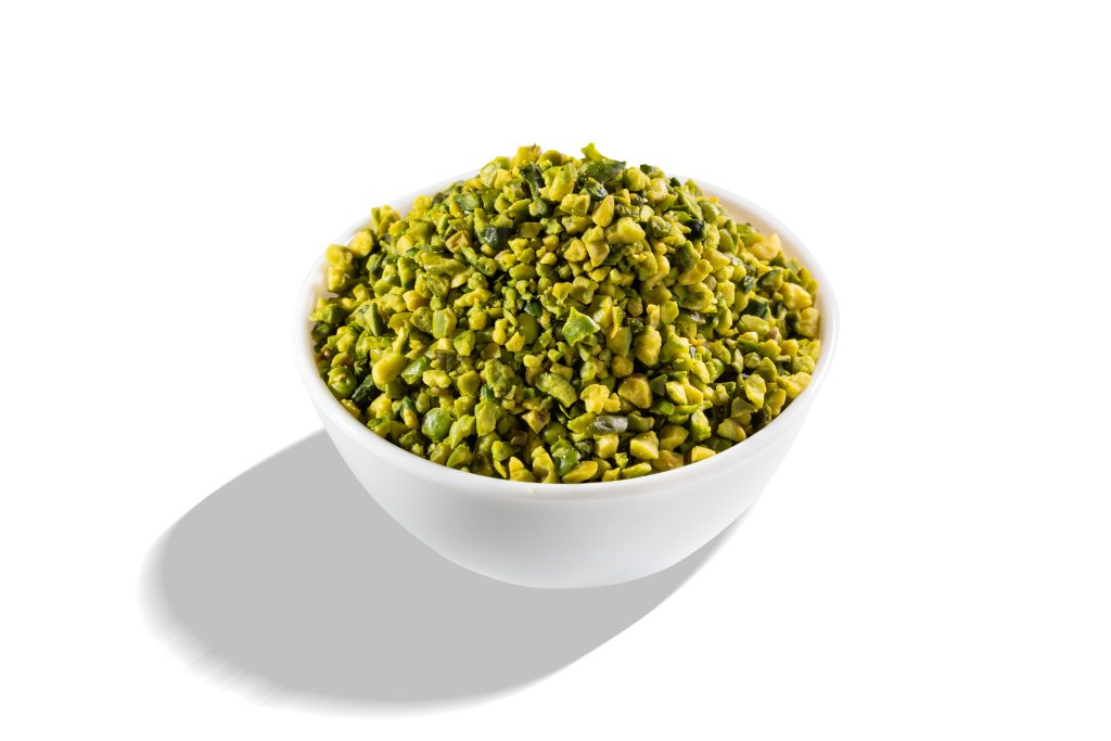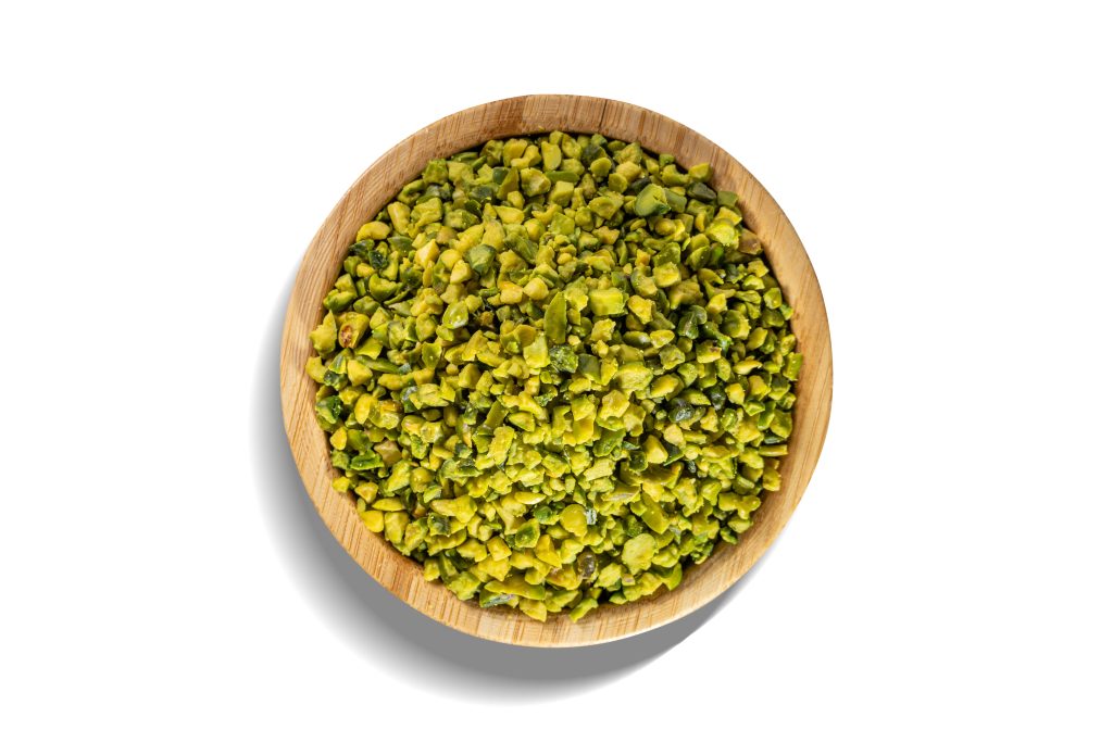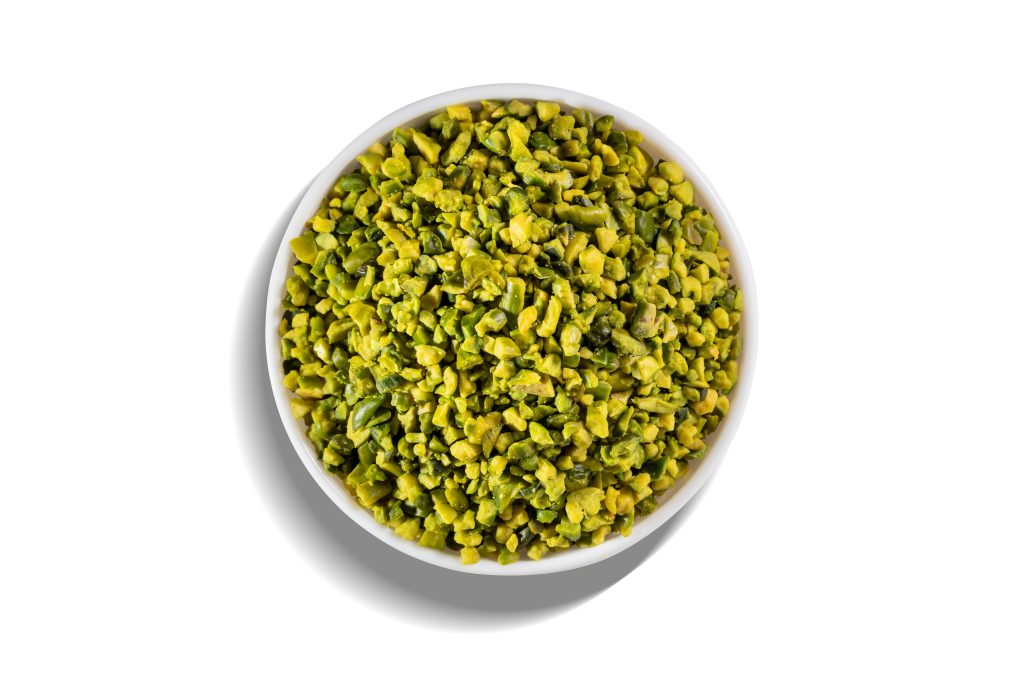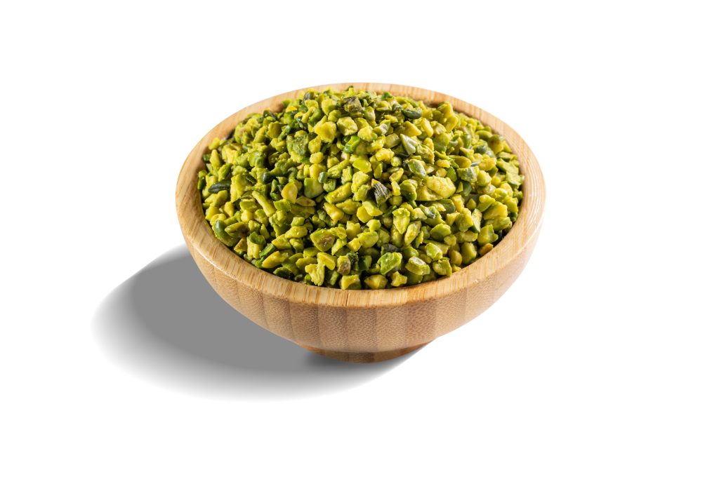 Green Peeled Diced Pistachio 2–4 mm is produced from premium green peeled pistachio kernels and carefully cut into small uniform pieces. This size offers vibrant natural green color and a fine texture that blends easily into desserts while still adding visual appeal.
