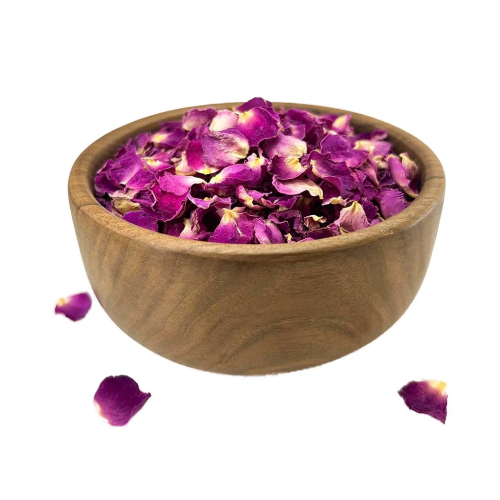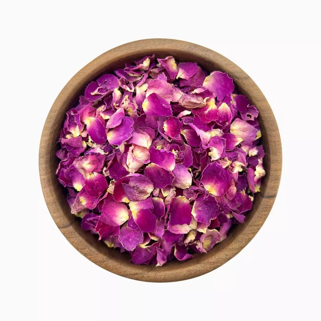 - Naturally dried rose petals with vibrant floral color